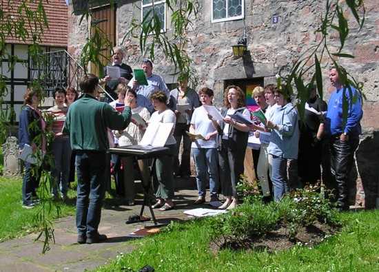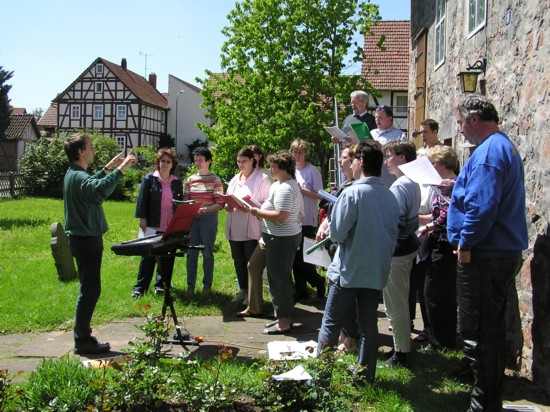 "Lokaltermin" für den ersten Auftritt beim Himmelfahrts-Fest rund um die Kirche: